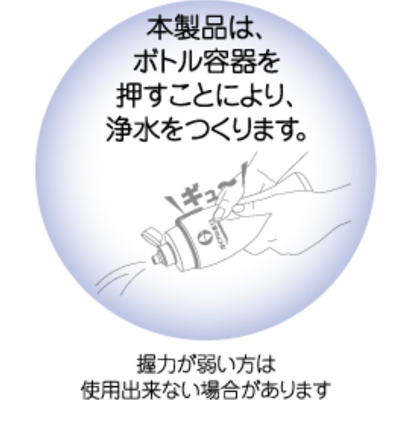 ボトル容器に水道水を入れて、ボトルを押して水を出せば【ガイアの水135】の水です。